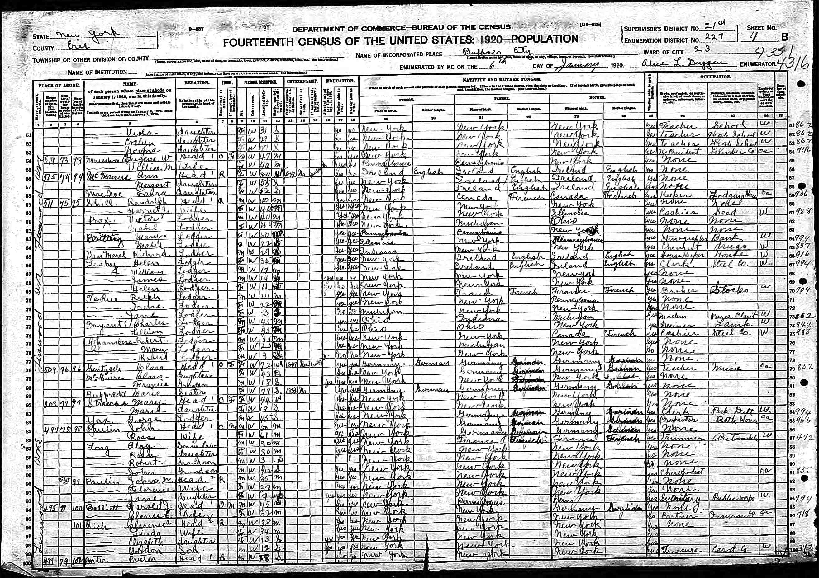 Residences1891 - Niagara Falls, New York | 1900 - Niagara Falls, Niagara, New York 1910 - Niagara Falls, Niagara, New York 1920 - Buffalo, Erie, New York 1930 - Buffalo, Erie, New York 1978 - Lafayette Hill, Montgomery, Pennsylvania |