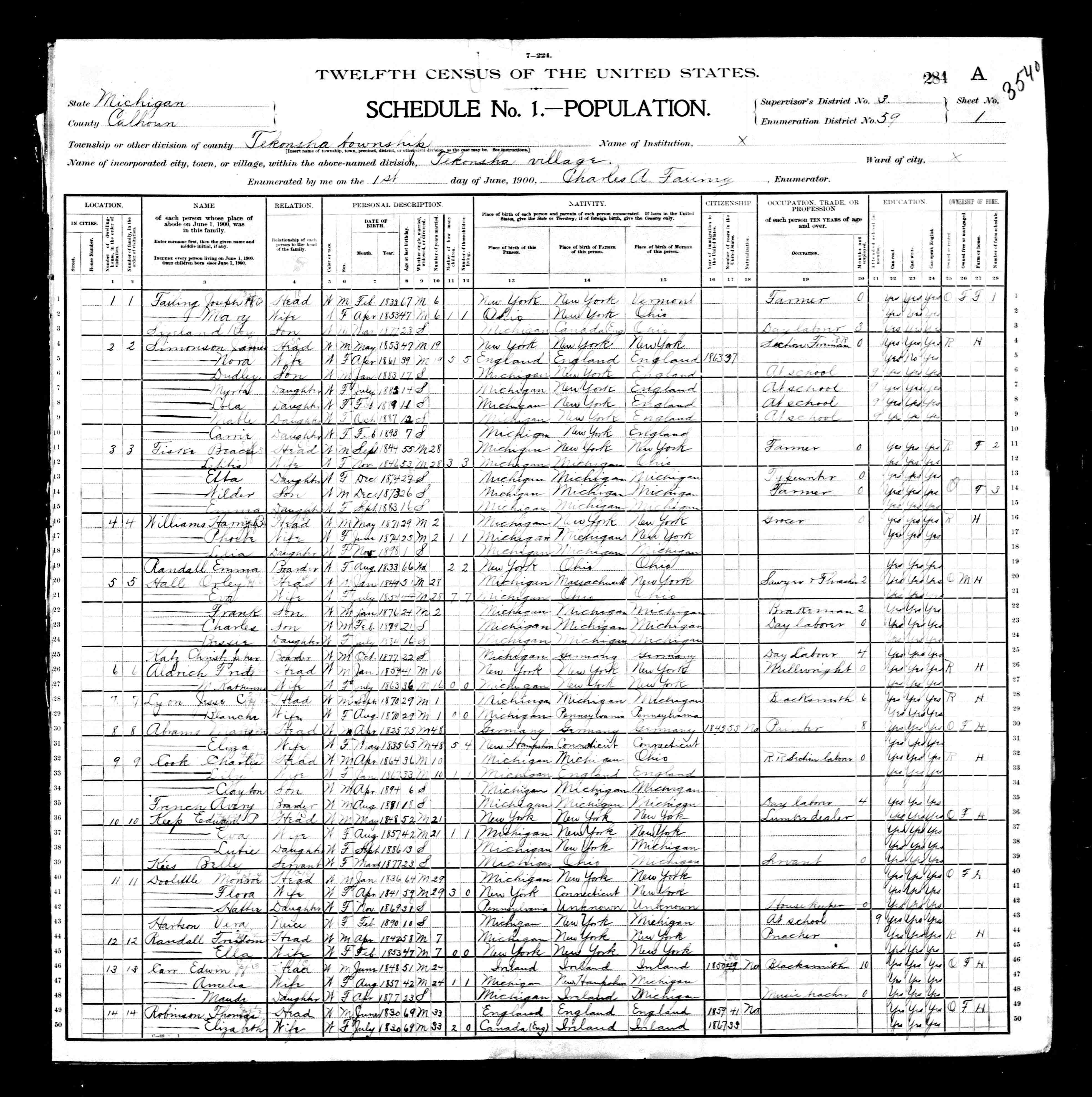 Residences1836 - Monroe, Michigan | 1850 - Clarendon, Calhoun, Michigan 1860 - Clarendon, Calhoun, Michigan 1900 - Tekonsha, Calhoun, Michigan 1910 - Tekonsha, Calhoun, Michigan |