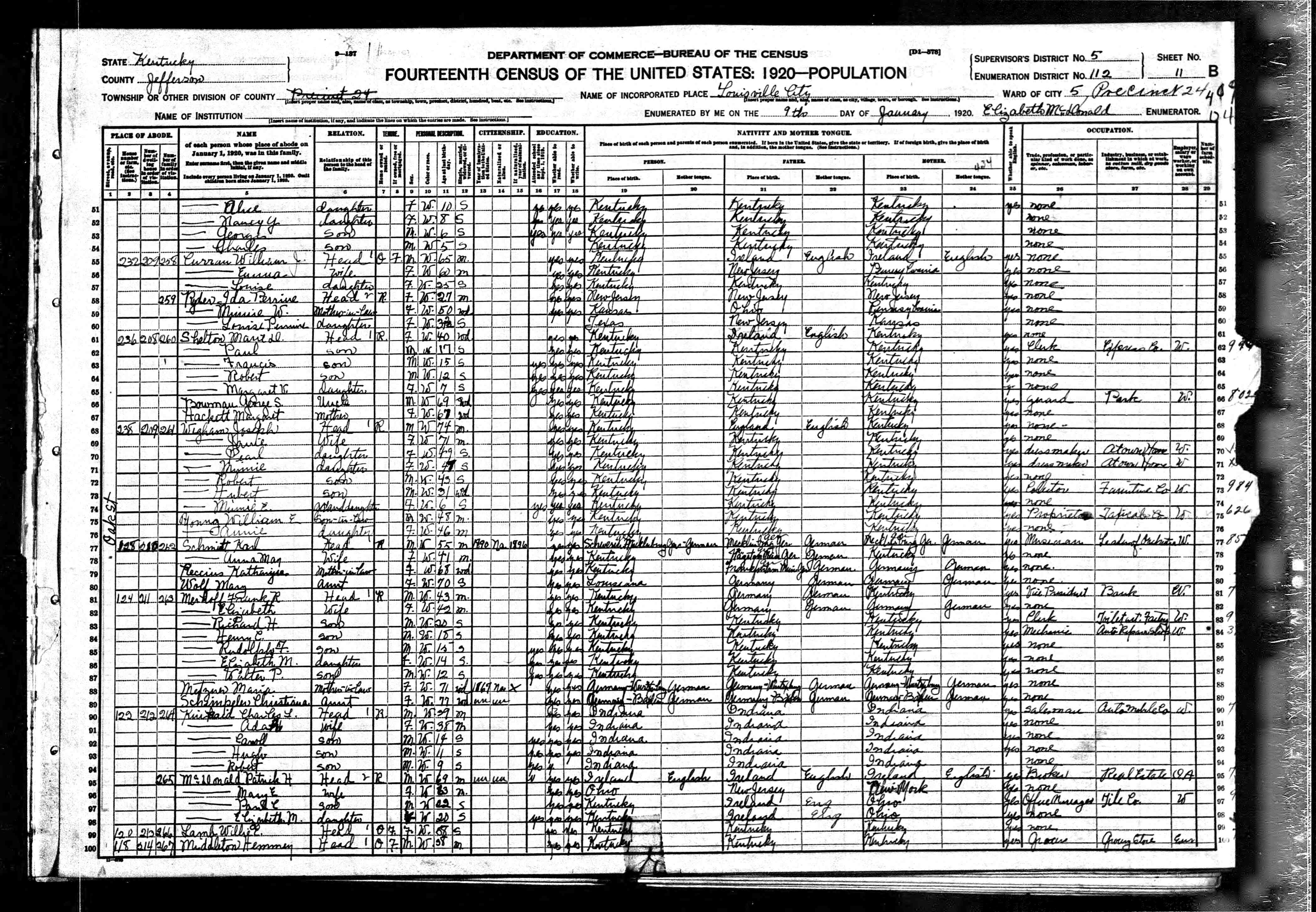 Residences1892 - Trenton, Essex County, New Jersey | 1900 - Trenton, Mercer, New Jersey 1910 - Trenton, Mercer, New Jersey 1920 - Louisville, Jefferson, Kentucky 1994 - Venice, Florida |