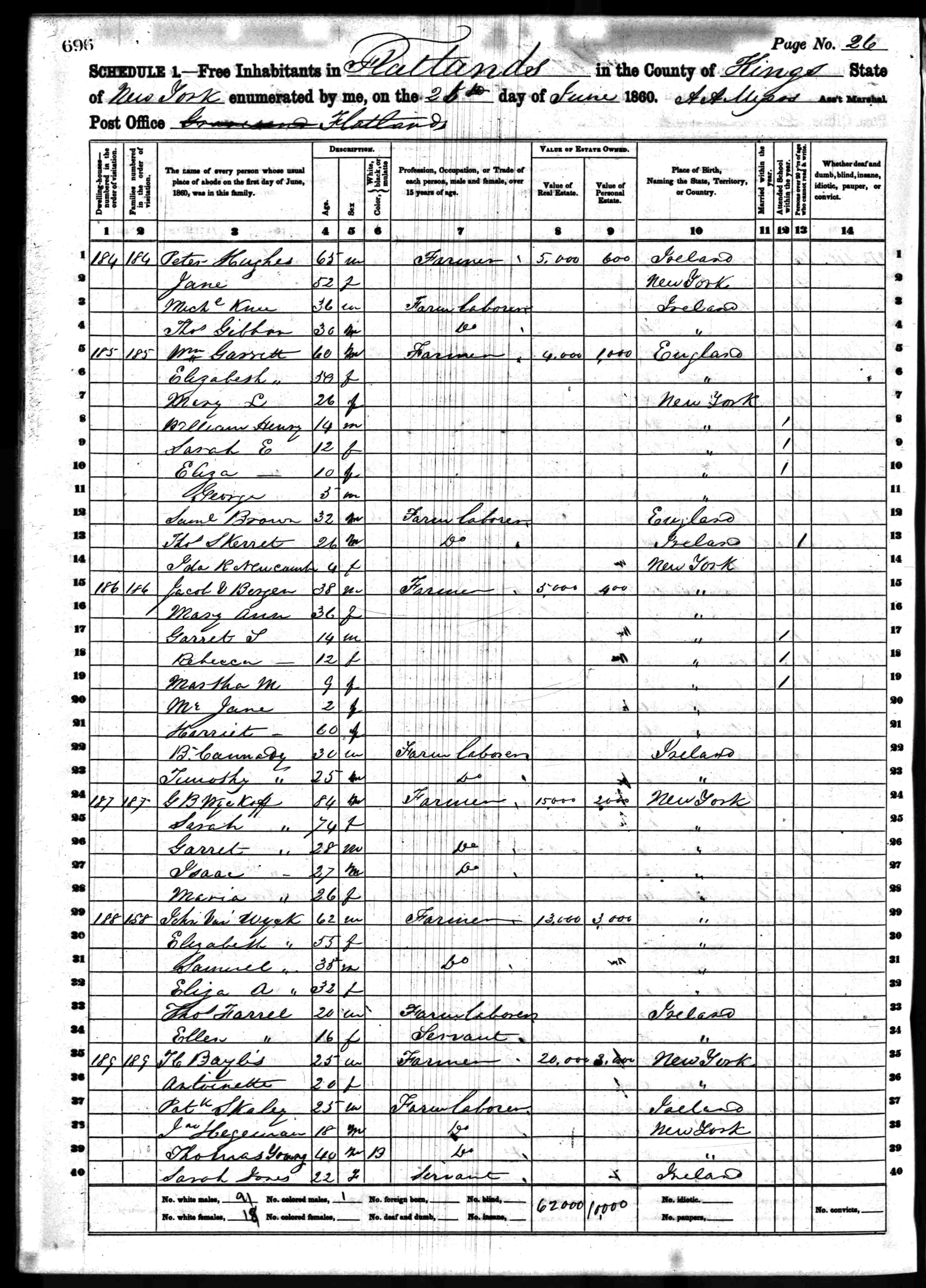 Residences1836 - Melville, New York | 1850 - Huntington, Suffolk, New York 1860 - Flatlands, Kings, New York 1870 - Brooklyn, Kings, New York 1880 - Queens, Queens, New York 1896 - Addsleighley Park, Queens, New York |