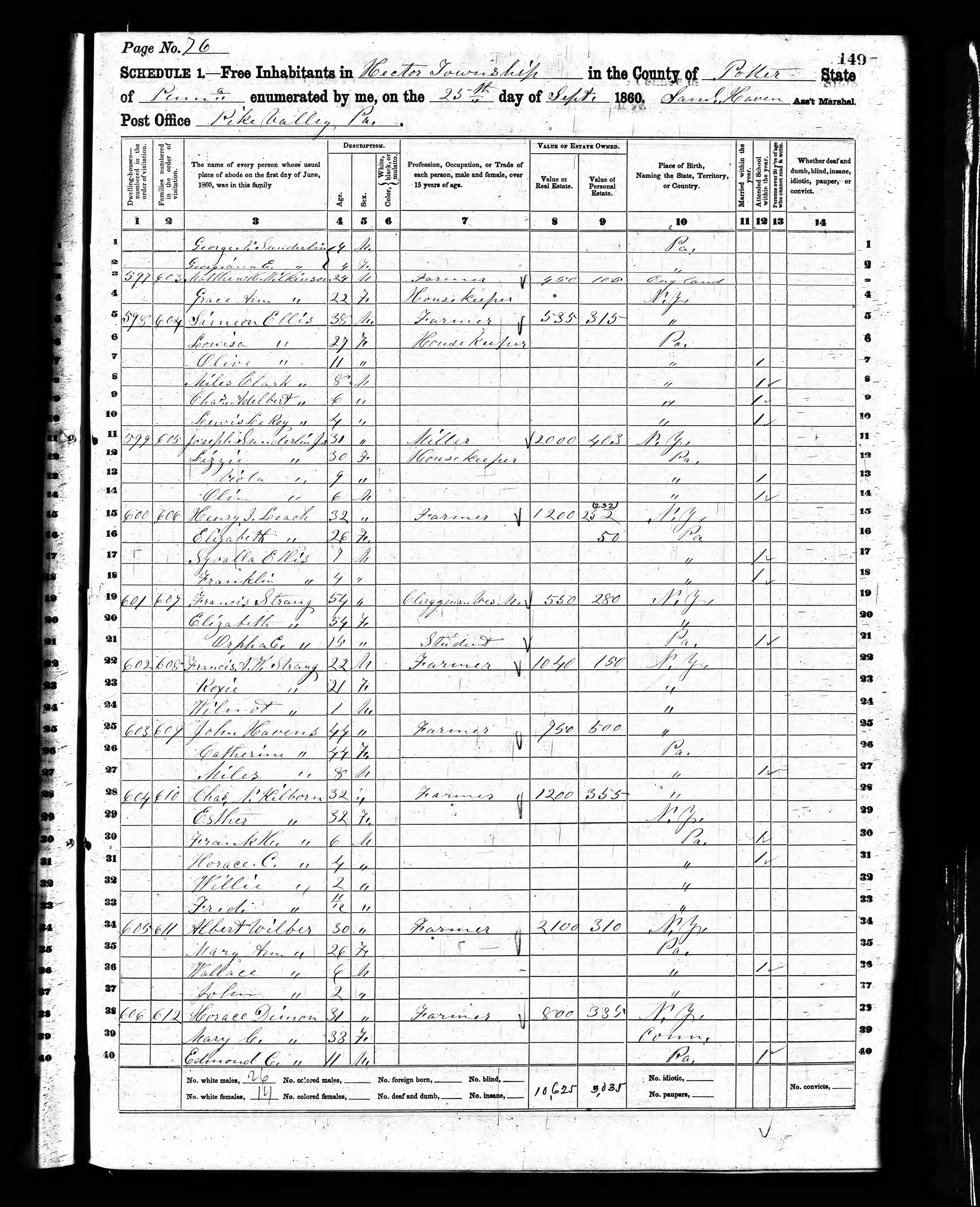Residences1827 - Wellsborough, Pennsylvania | 1860 - Hector, Potter, Pennsylvania 1870 - Hector, Potter, Pennsylvania 1888 - Hector, Potter, Pennsylvania |
