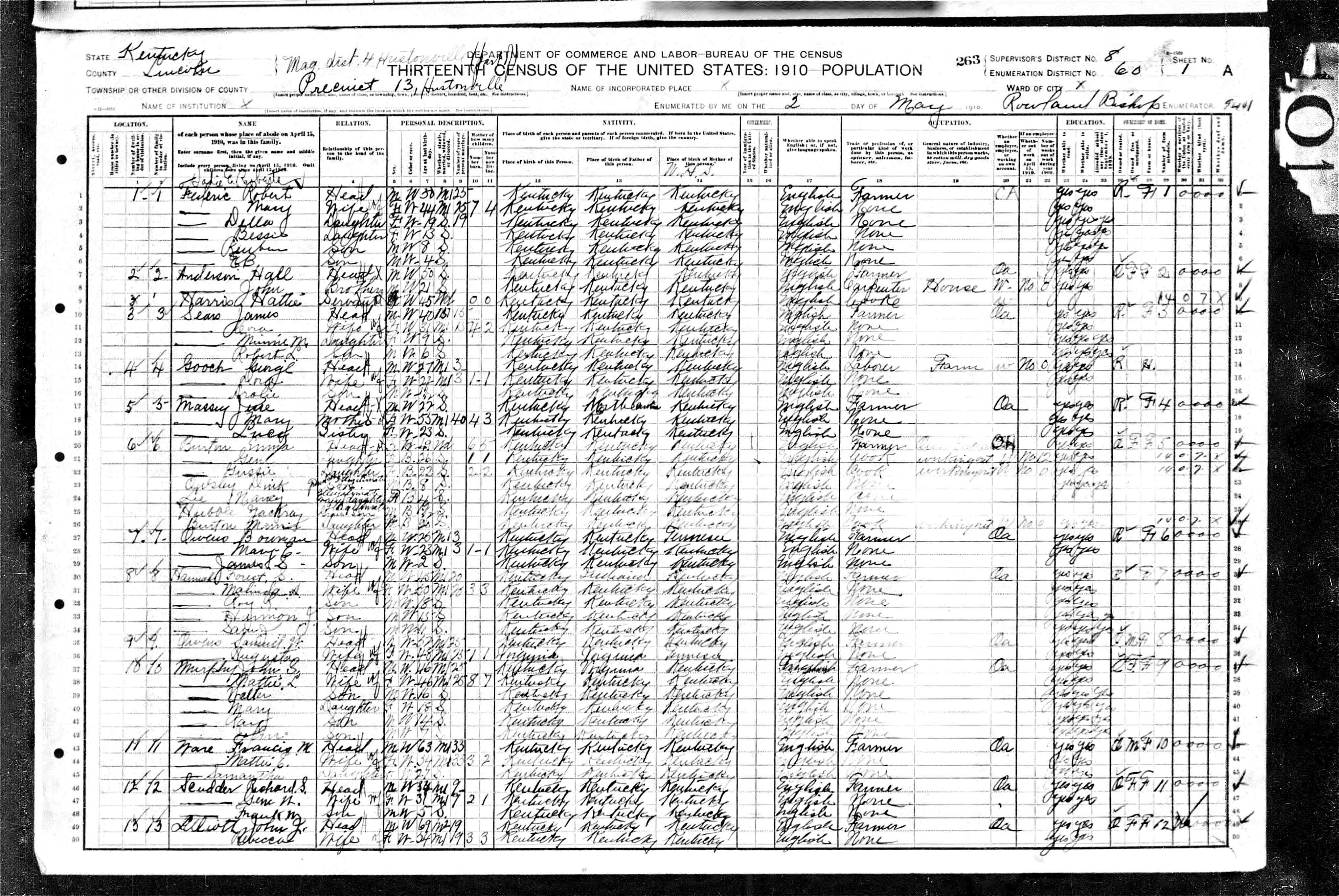 Residences1904 - Lincoln, Kentucky | 1910 - Hustonville, Lincoln, Kentucky 1920 - Hustonville, Lincoln, Kentucky 1981 - Stanford, Lincoln, Kentucky |
