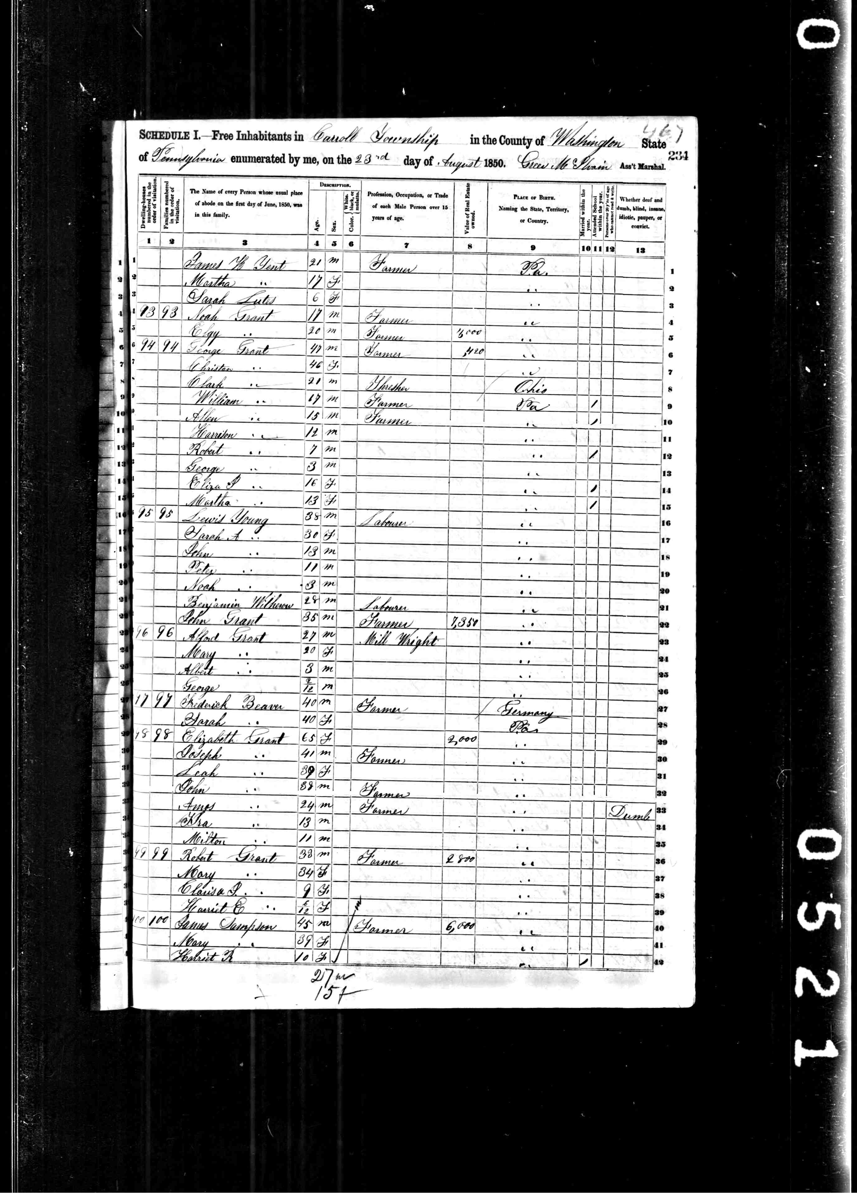Residences1811 - Carroll, Pennsylvania | 1850 - Carroll, Washington, Pennsylvania 1880 - Stillwell, West Virginia |