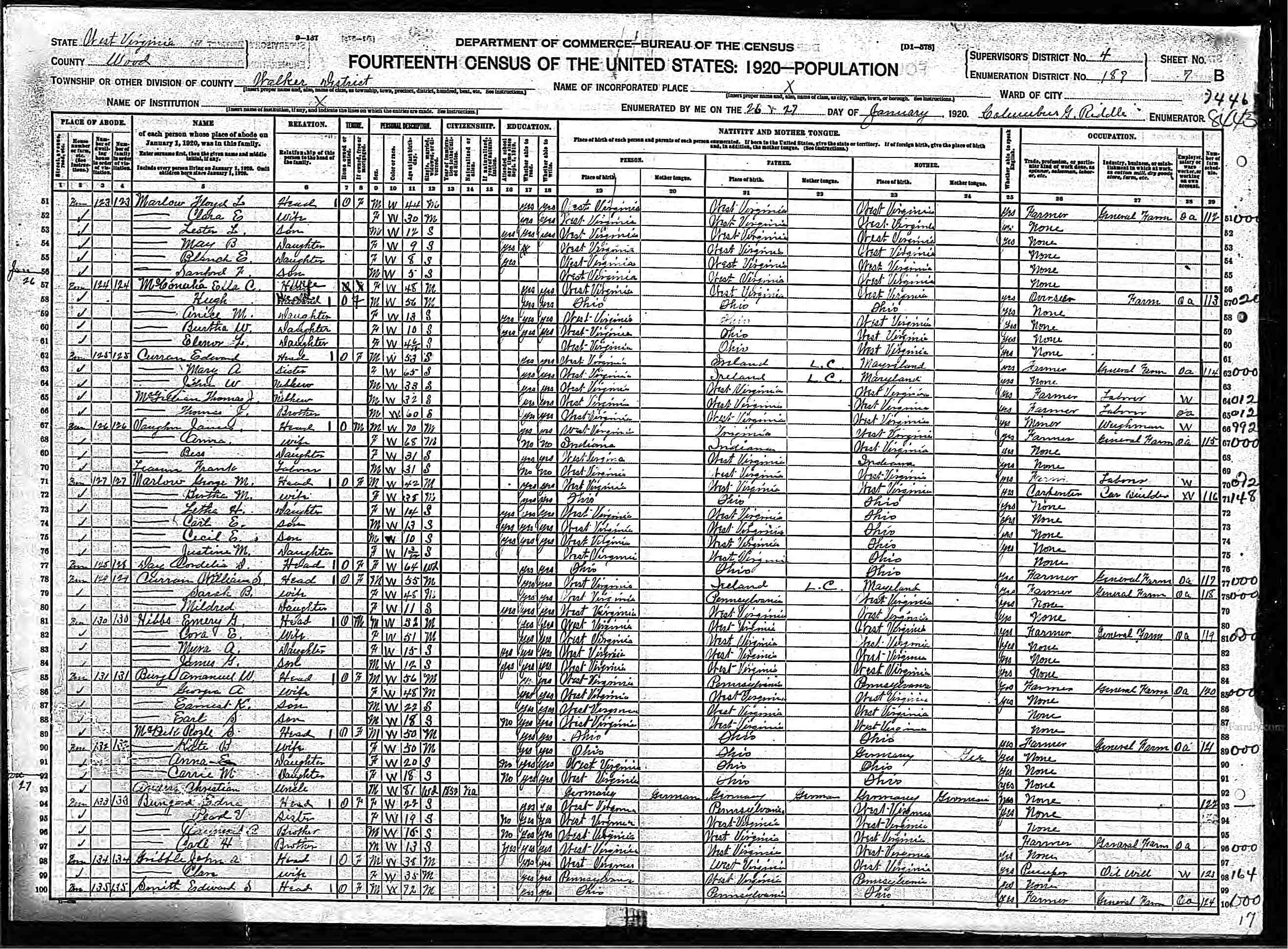 Residences1854 - Wood, Virginia | 1860 - Wood, Virginia 1880 - Walker, Wood, West Virginia 1900 - Walker, Wood, West Virginia 1910 - Walker, Wood, West Virginia 1920 - Walker, Wood, West Virginia 1930 - Wood, West Virginia |
