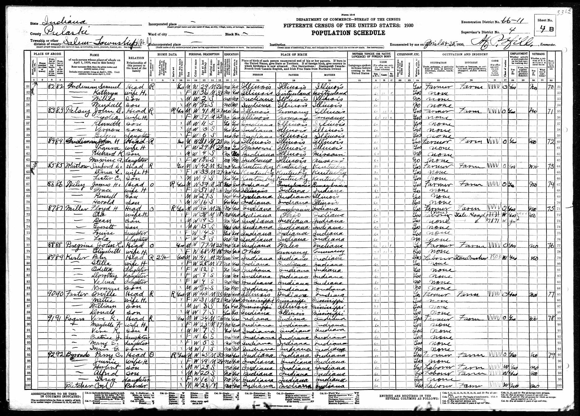 Residences1889 - Monon, White, Indiana | 1900 - Monon, White, Indiana 1920 - Monon, White, Indiana 1930 - Salem, Pulaski, Indiana 1970 - Fowler, Benton, Indiana |