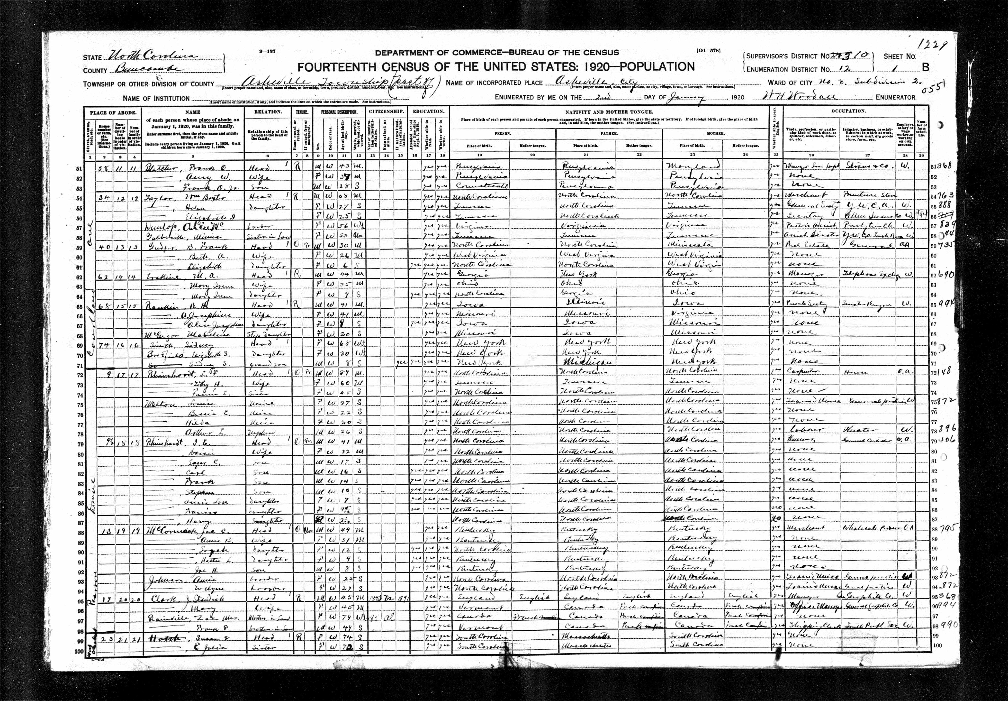 Residences1914 - North Carolina | 1920 - Asheville, Buncombe, North Carolina 1930 - Asheville, Buncombe, North Carolina 1940 - Charlotte, Mecklenburg, North Carolina |