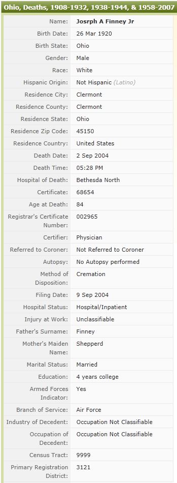 Residences1920 - Schuyler, Illinois | 1930 - Birmingham, Schuyler, Illinois 1940 - Brooklyn, Schuyler, Illinois 2008 - Hamilton County, Ohio |