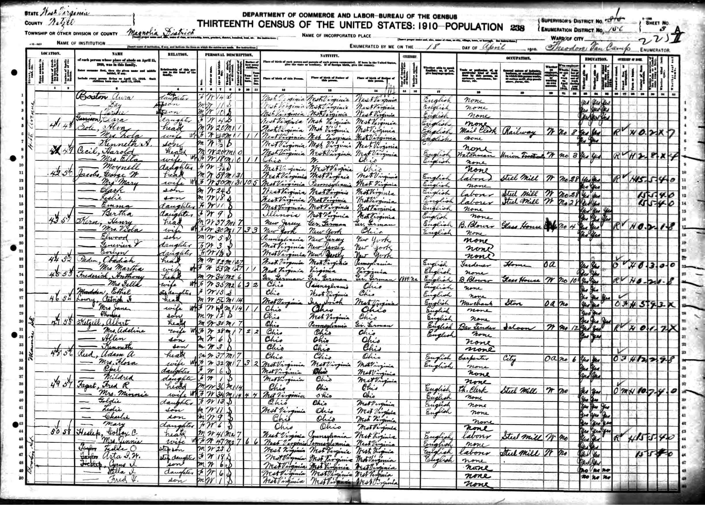 Residences1904 - West Virginia | 1910 - Magnolia, Wetzel, West Virginia 1920 - Grant, Hancock, West Virginia 1930 - Pulaski, Beaver, Pennsylvania 1975 - Alliance, Stark, Ohio |