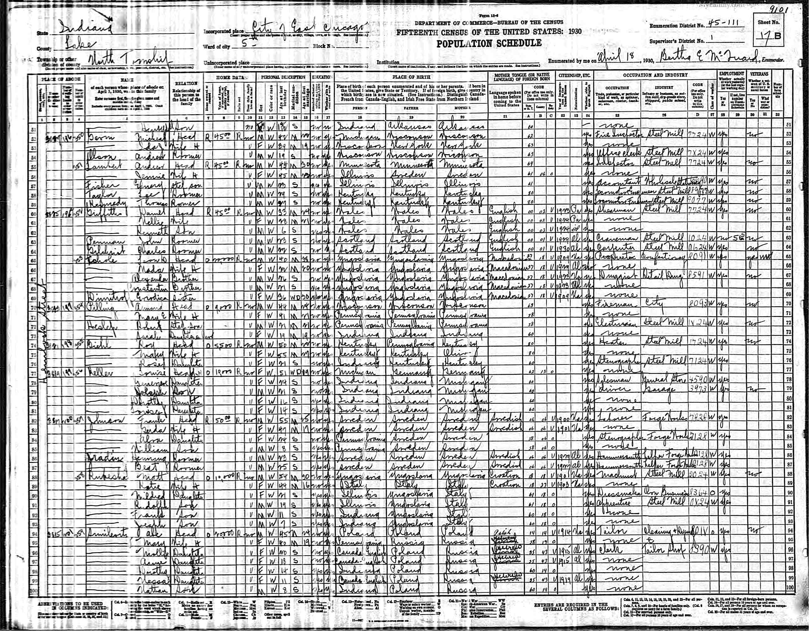 Residences1908 - Pennsylvania | 1910 - Donora, Washington, Pennsylvania 1930 - East Chicago, Lake, Indiana |