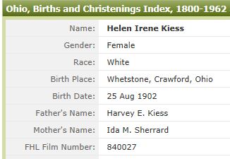 Residences1902 - Whetstone, Crawford County, Ohio | 1910 - Bucyrus, Crawford, Ohio 1920 - Bucyrus, Crawford, Ohio 1930 - East Cleveland, Cuyahoga, Ohio 1940 - Cleveland Heights, Cuyahoga, Ohio 1994 - Cleveland, Cuyahoga, Ohio |