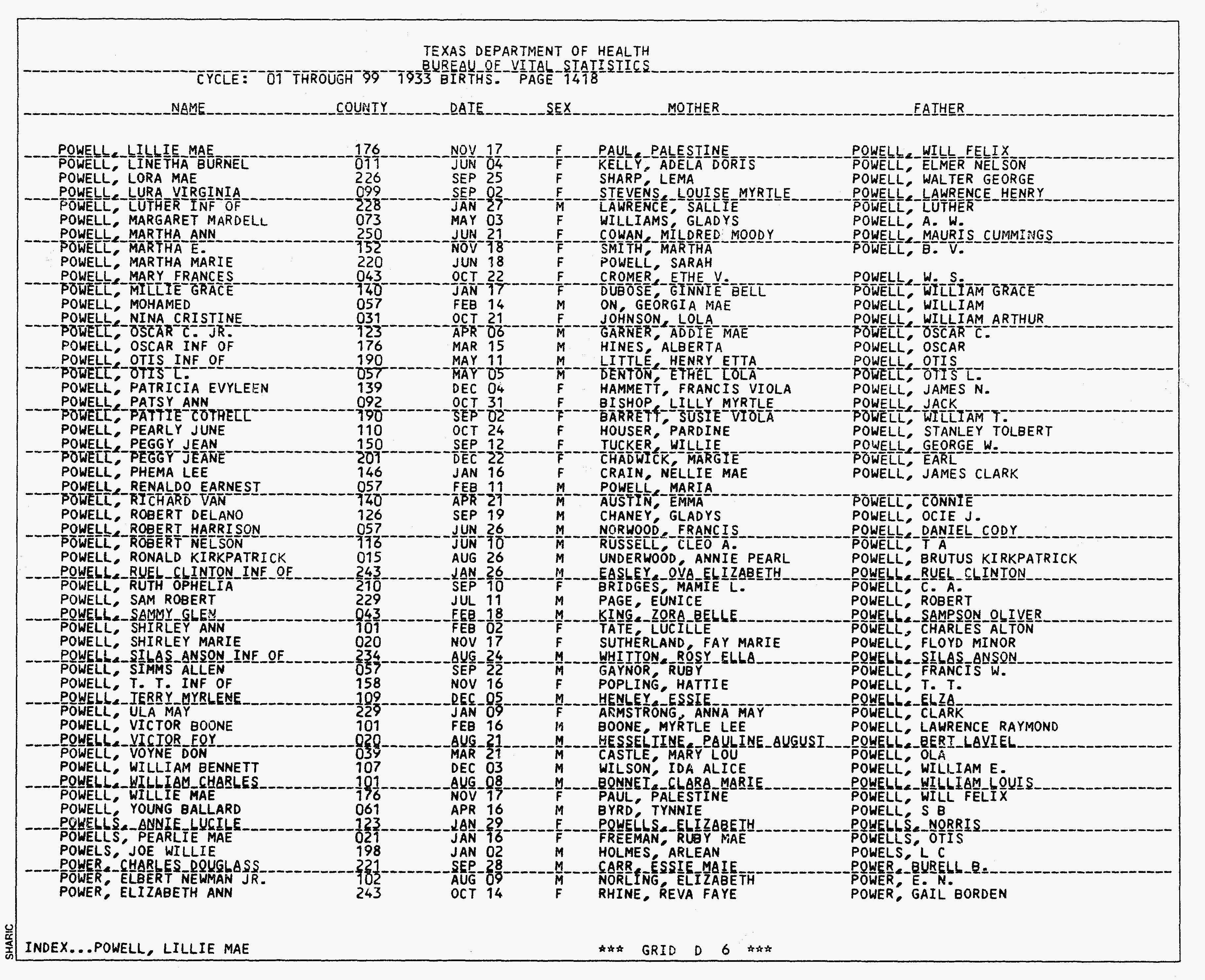 Children Debbra Charline Powell  - 28 Sep 1951 -