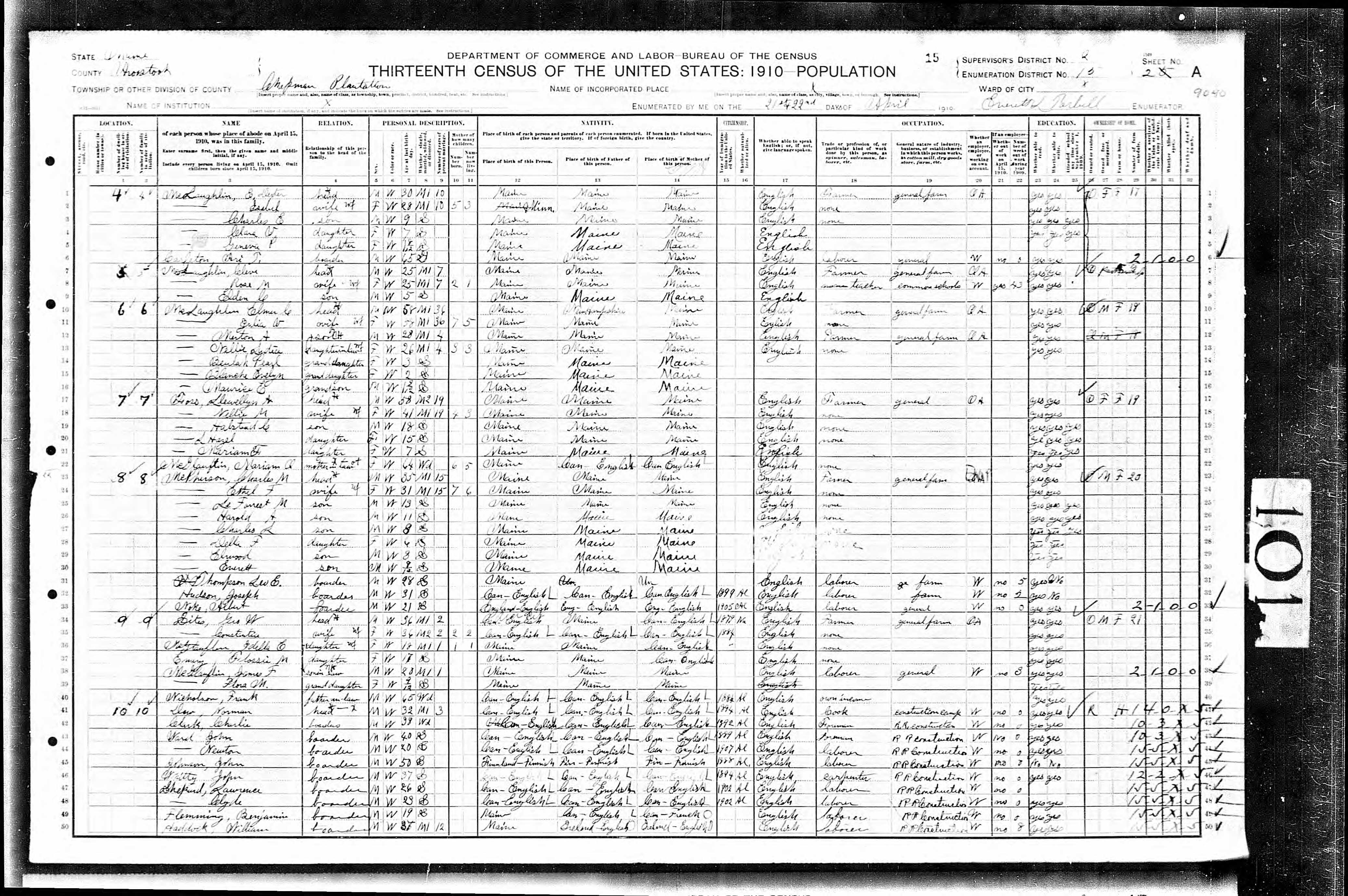 | 10 Oct 1920 - Chapman, Aroostock, Maine | |