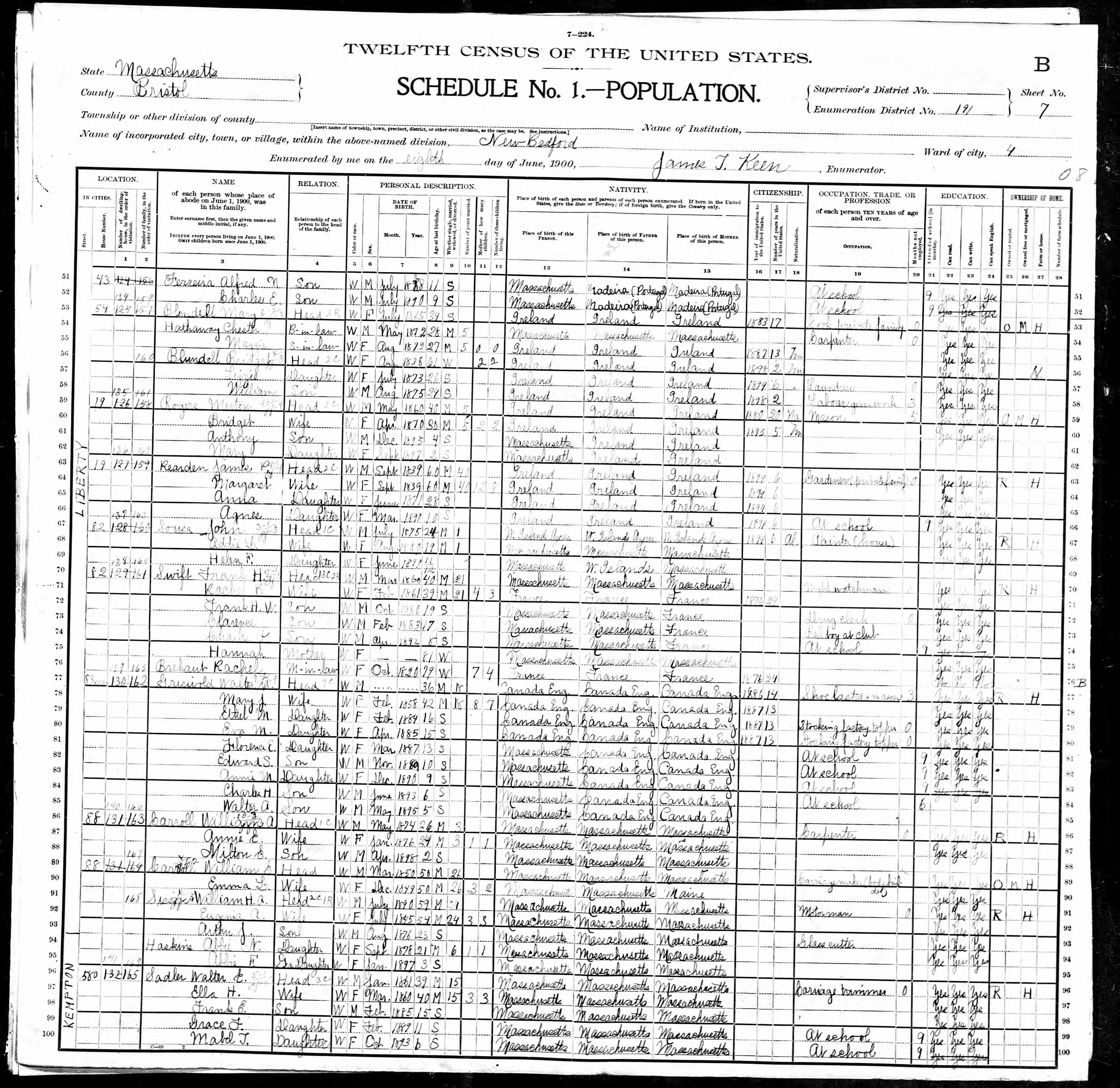 Residences1852 - New Bedford, Bristol, Massachusetts | 1860 - New Bedford, Bristol, Massachusetts 1880 - New Bedford, Bristol, Massachusetts 1900 - New Bedford, Bristol, Massachusetts 1910 - New Bedford, Bristol, Massachusetts |