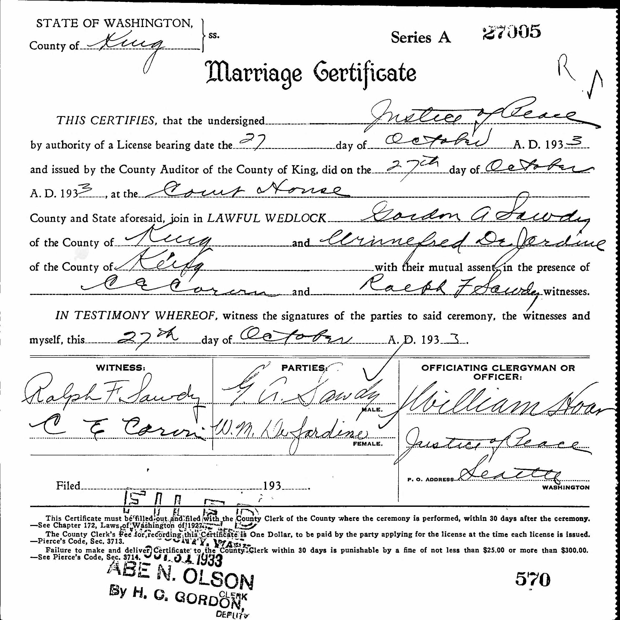 Gordon Arthur Sawdy - Mable Ruse - Winnefred Dejardine