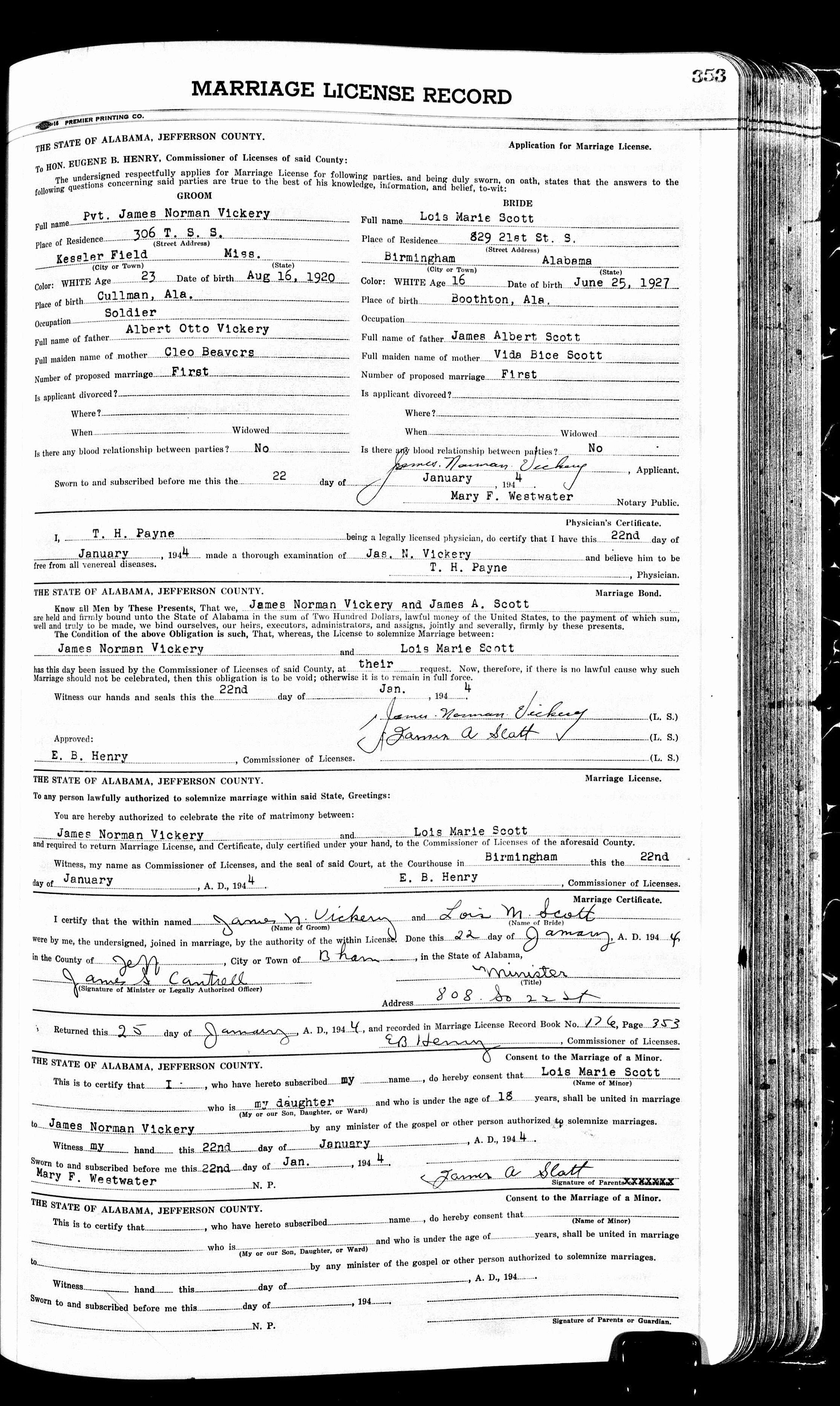 | 22 Jan 1944 - Jefferson County, Alabama | |