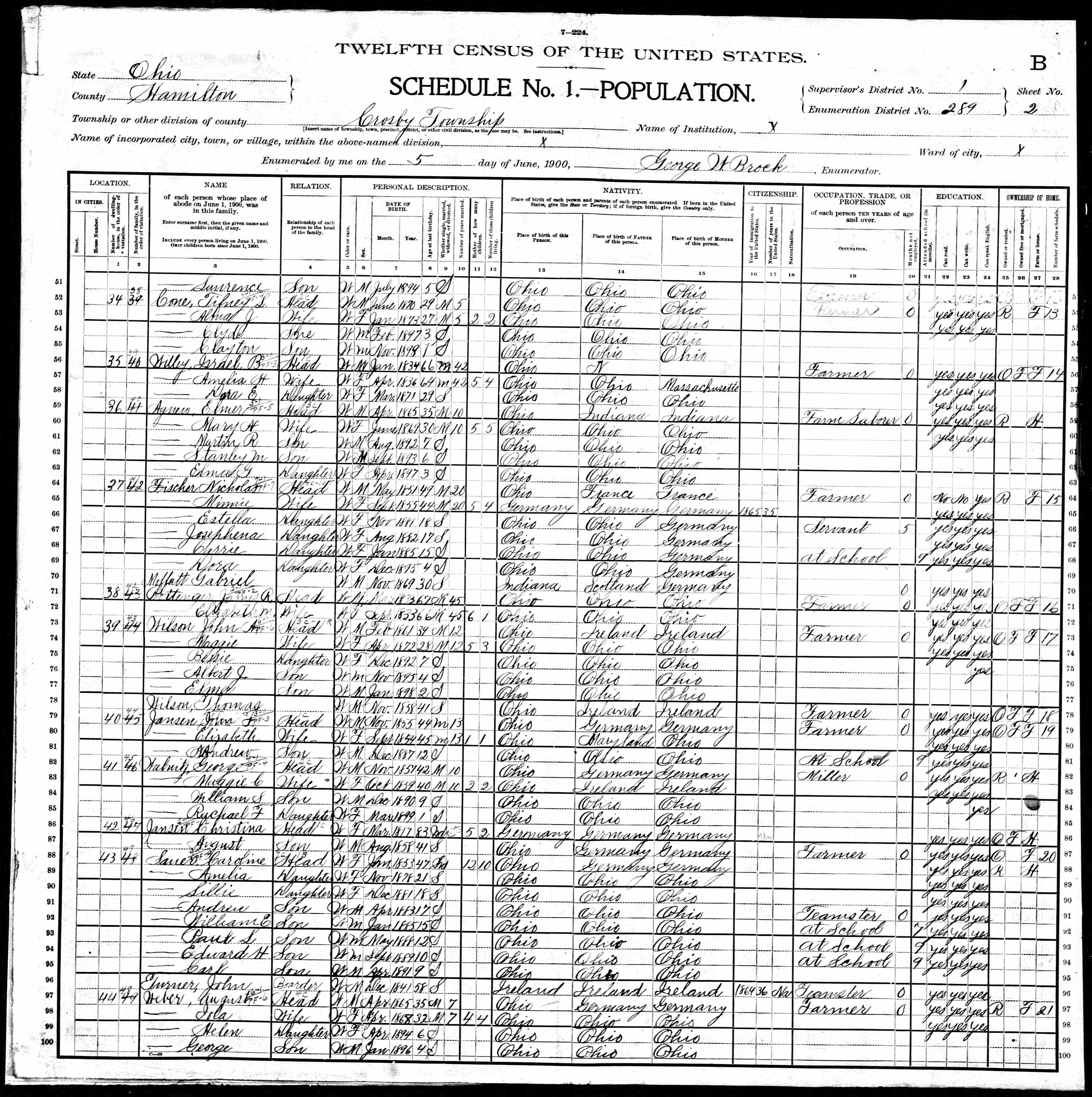 Residences1898 - Ohio | 1900 - Crosby, Hamilton, Ohio 1910 - Colerain, Hamilton, Ohio 1920 - Norwood, Hamilton, Ohio 1940 - Ross, Butler, Ohio |