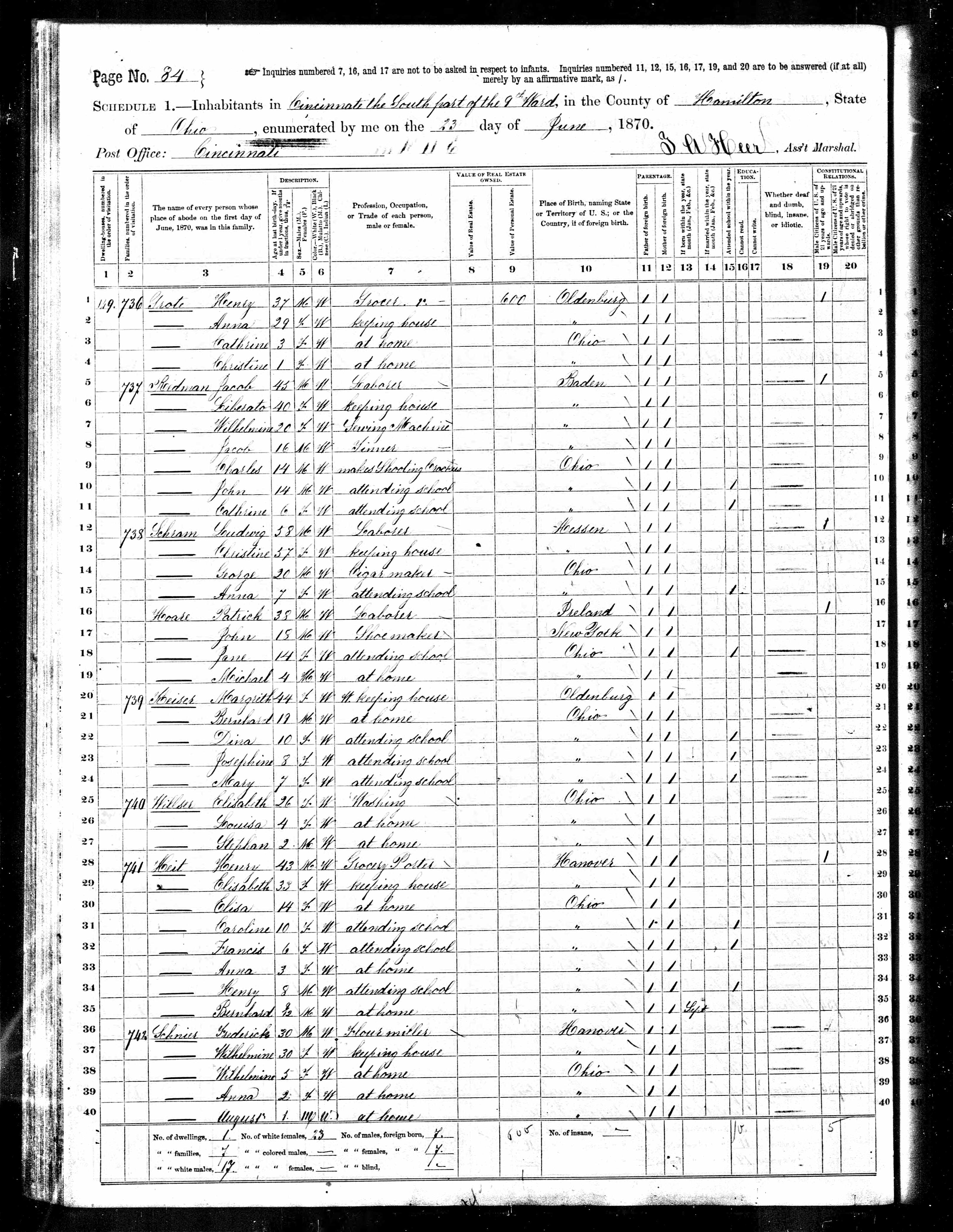 1843 - Steinsfurt, Baden, Germany 1860 - Cincinnati, Hamilton, Ohio 1870 - Cincinnati, Hamilton, Ohio